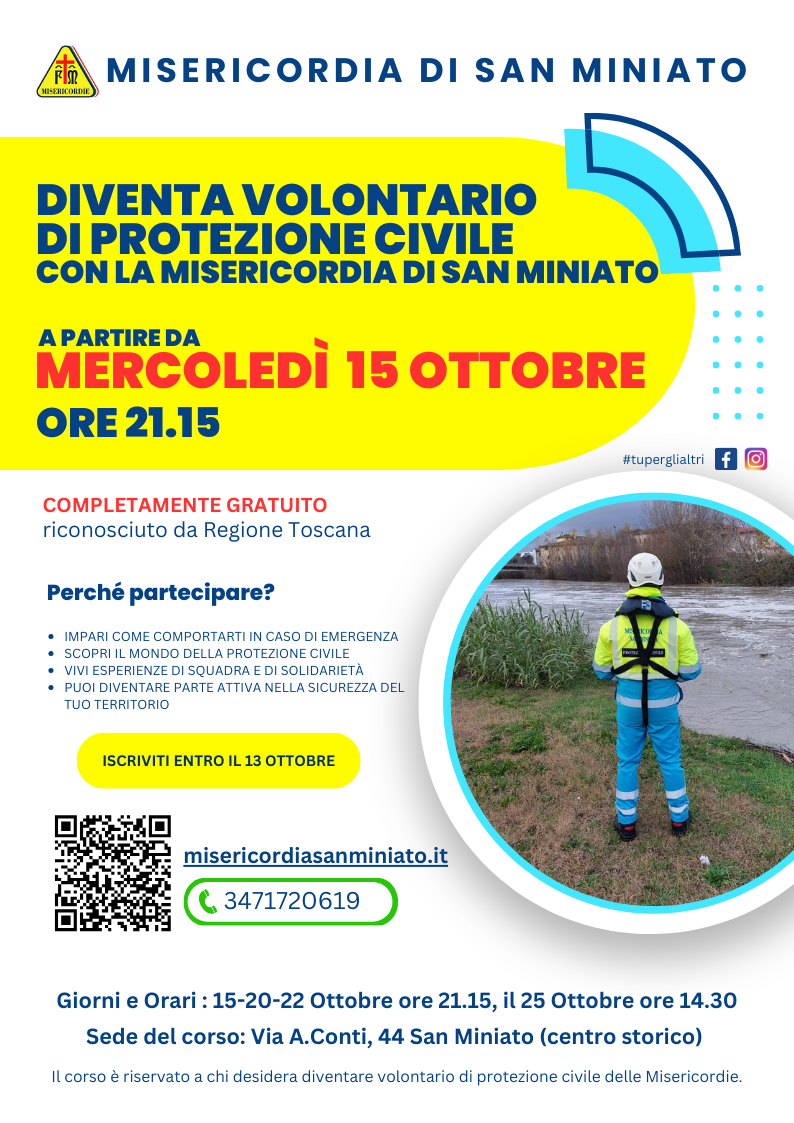 Anche nel mese di Ottobre la nostra associazione darà il via al corso base per diventare volontari di protezione civile.